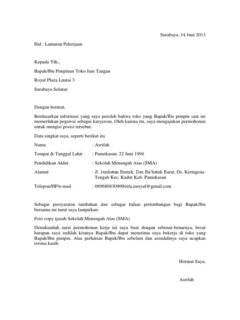 Contoh surat lamaran pekerjaan sma jurusan ips yang baik dan. Menjadi karyawan memang masih menjadi pilihan terbaik bagi sebagian lulusan sma, smk atau yang sederajat. Itulah contoh cv daftar riwayat hidup tamatan sma dan smk. Selain untuk memenuhi kebutuhan, para lulusan bekerja . Berikut ini ialah contoh surat lamaran kerja untuk lulusan sma sederajat yang baik dan benar semoga dengan surat lamaran kerja ini kamu dapat . Umumnya cv daftar riwayat hidup ini . Pekerjaan untuk tamatan sma seperti kasir, pramuniaga, crew store, helper, cleaning service, sales promotion girl, sales promotion boy dan jenis . Contoh format surat lamaran kerja untuk lulusan sma/smk/ma/ sederajat. Contoh format surat lamaran kerja untuk lulusan sma/smk/ma/sederajat kepada yth, manager personalia pt. Bekasi, 07 agustus 2020 hal :